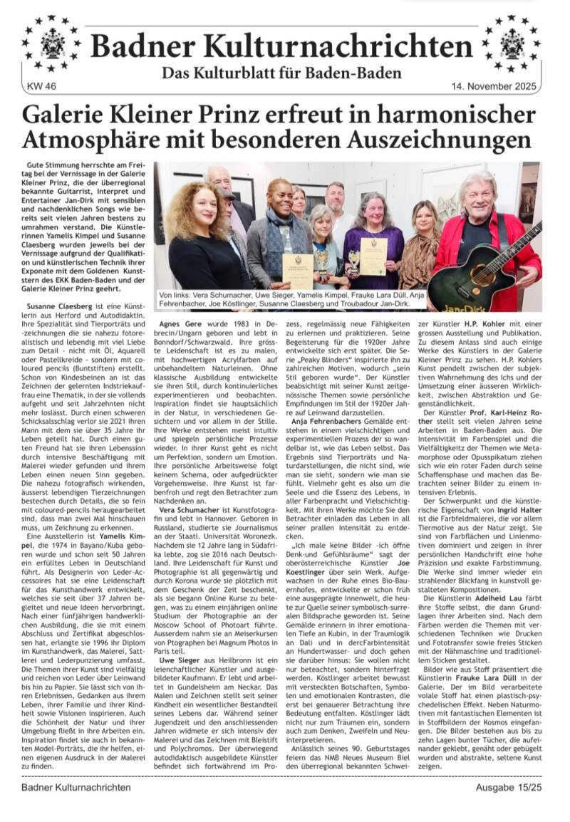 Bildende Künstler der Gegenwart stellen sich vor | Gruppenaustellung | Galerie KLEINER PRINZ Baden-Baden |